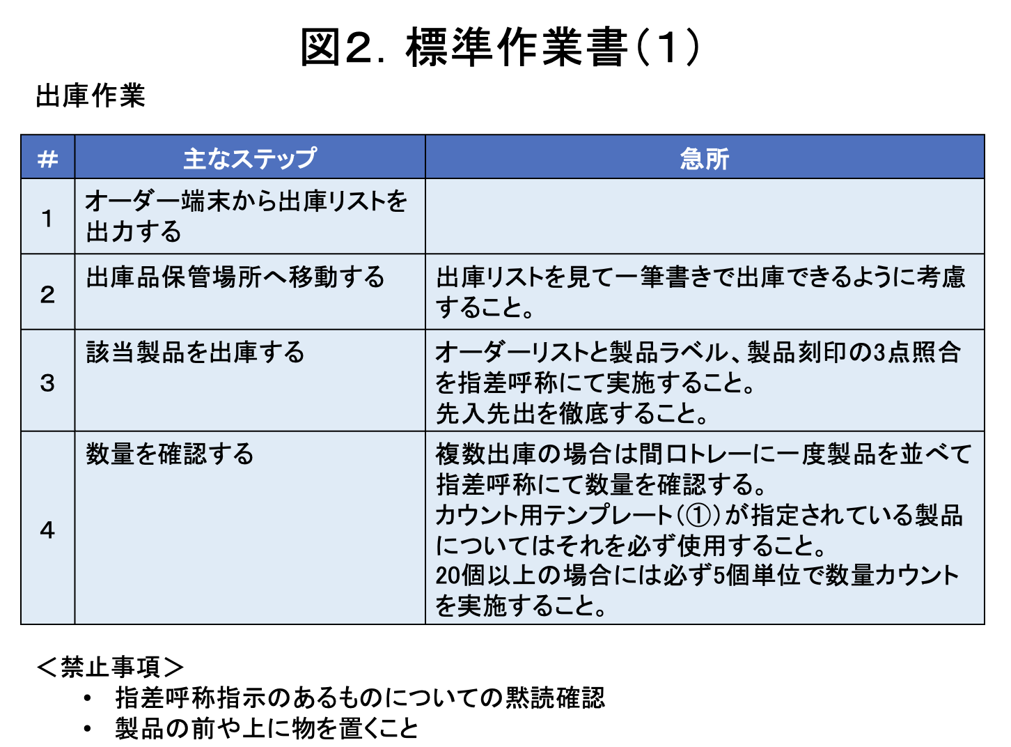 - 出庫作業標準化のポイントは品質向上と作業効率向上の2つだ。